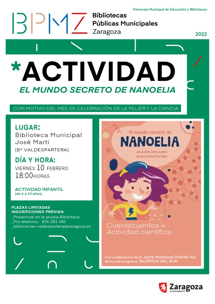 Plazas limitadas. Inscripciones, hasta completar aforo, a partir del 1 de febrero, de forma presencial en la biblioteca, por teléfono (976 72 62 18) o por correo electrónico (bibliotecas-rosales@zaragoza.es).
