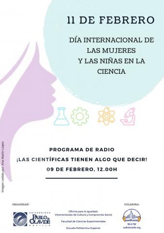 Programa de radio. RadiOlavide, Universidad Pablo de Olavide, Sevilla. 9 de febrero, 12.00h Programa de radio especial en el que participan la Oficina para la Igualdad y profesorado de la Facultad de Experimentales de la UPO en colaboración con RadiOlavide, con el objetivo de reflexionar en torno a la situación de las mujeres en laSigueSigue leyendo «¡Las científicas tienen algo que decir!»