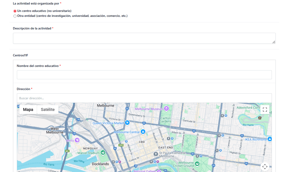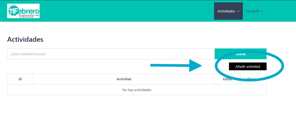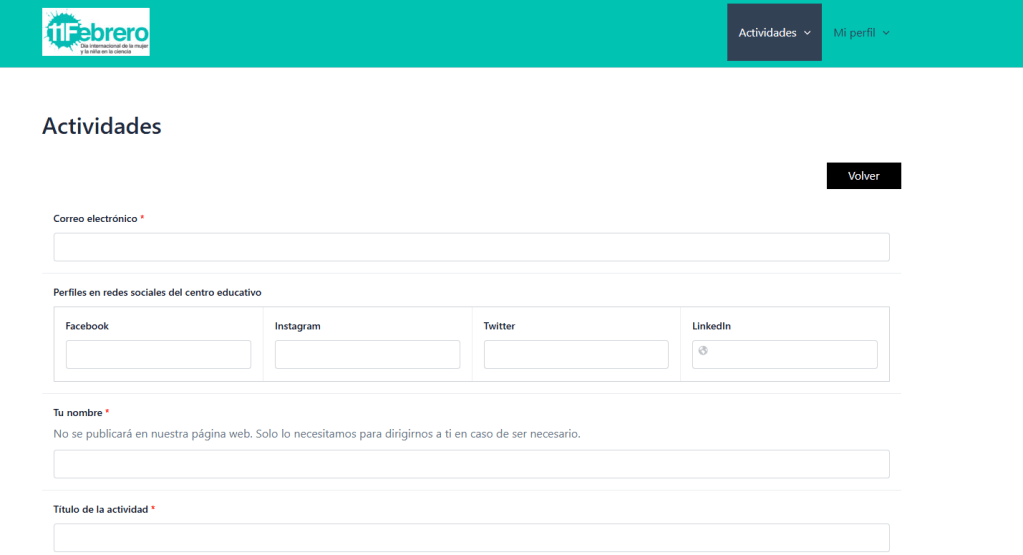 - Pestaña “Actividades”: formulario de registro de las actividades 11F