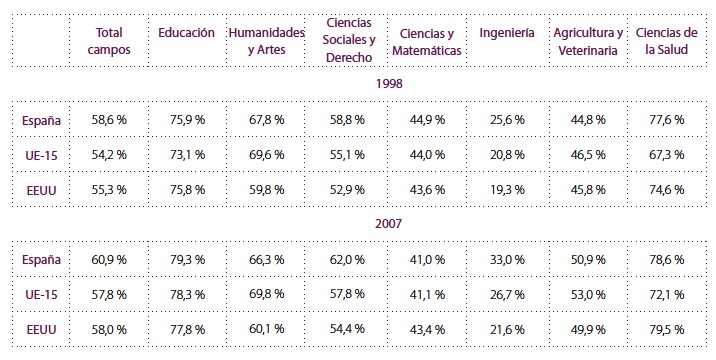 Previous Image Siguiente imagen evoluciontemporal1 Porcentaje de mujeres que terminan los estudios universitarios de licenciatura y/o máster. Fuente: Libro blanco.