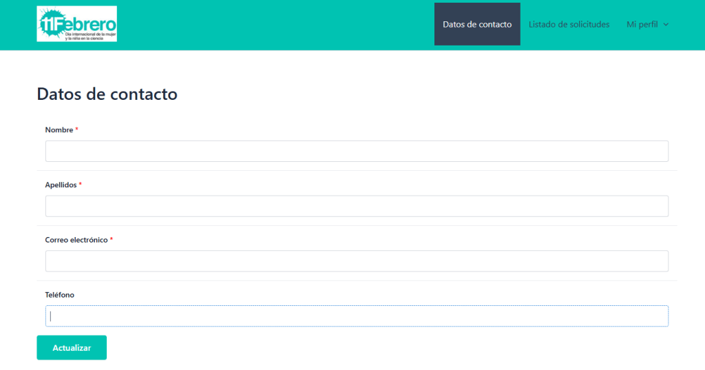 - Ficha de los “Datos de contacto” que se enviarán al colegio donde la persona STEM ha pedido una solicitud: