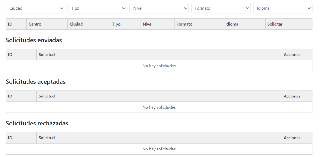 - Aceptadas por el centro: el colegio ha aprobado tu propuesta y ahora está pendiente tu confirmación.