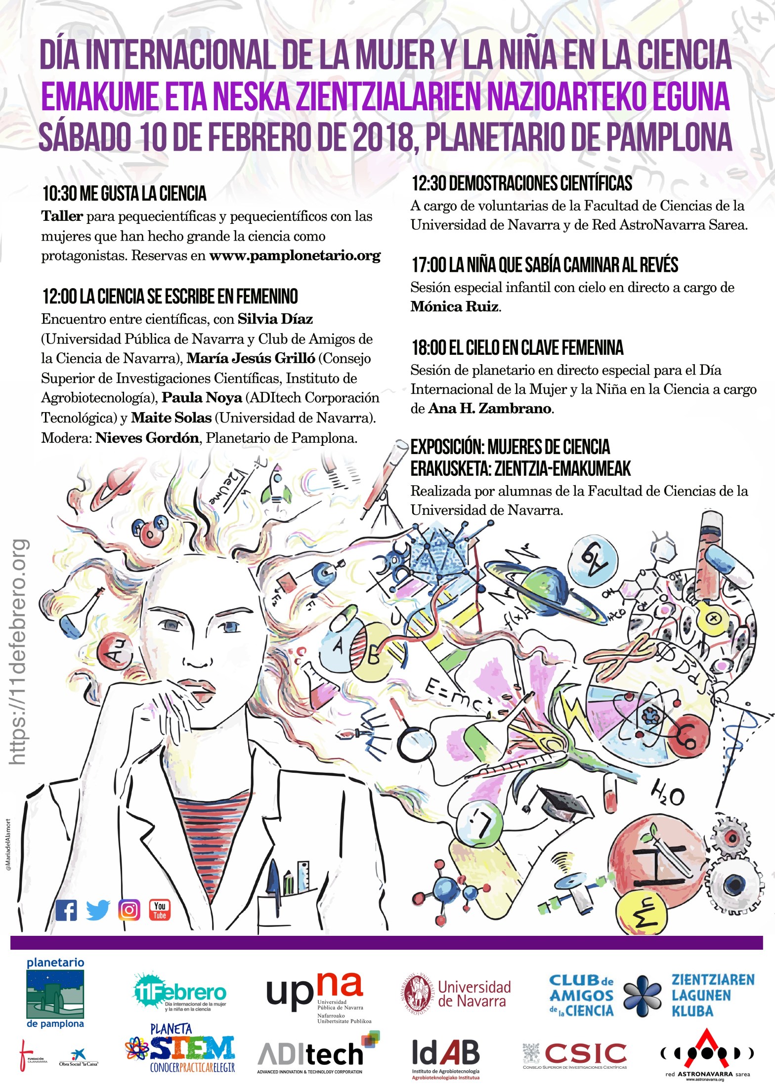 Actuación. Planetario de Pamplona. 03 de febrero de 2018, 19:30h. Monólogos científicos sobre la mujer y la niña en la ciencia. Email para reservas e información: sara.oses@csic.es Organiza: CSIC, IdAB Patrocina: CSIC ¿Abierta al público general?: Sí – con reserva